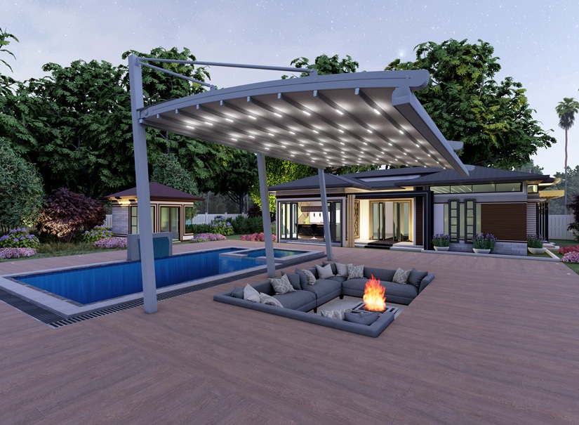 Learn MoreOur retractable pergolas are made of aluminum profiles and special fabrics called blockout which it has high durability. Our pergolas provides you water proof living areas.